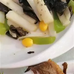 红烧猴头蘑 糖醋鸡块 馄饨香蕉卷 油焖春笋。