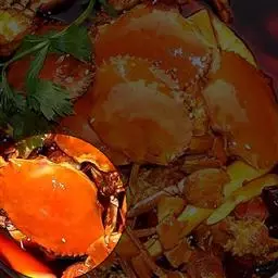 水煮猪杂 煎连壳蟹 干锅腊味河蚌 金鱼戏莲。