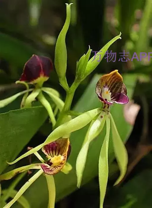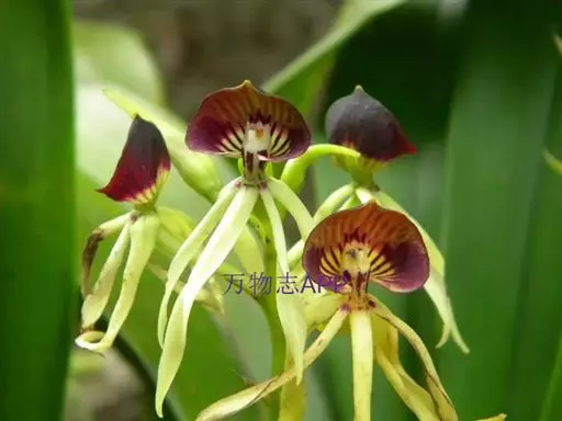 章鱼兰形如海贼王中海王类的小章鱼而得名,又因唇瓣宛若美丽的扇贝壳而称为扇贝兰。