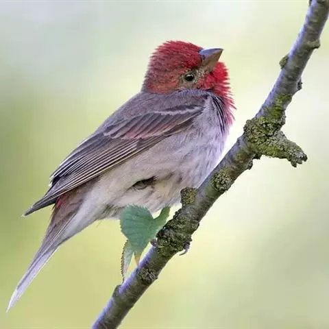 北朱雀,是燕雀科朱雀属鸟类。雄鸟额和头顶前部珠白色具窄的粉红色羽缘,…