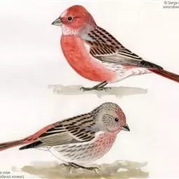 粉红腹岭雀:为燕雀科岭雀属的鸟类。体重25-34克,体长150-182毫米。是一种中等体型的深色岭雀。…