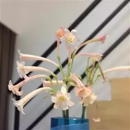 长筒石蒜草本,地生。鳞茎卵球形;叶披针形;伞形花序,有花5-7朵,花白色;花被裂片腹面稍有淡红色条纹,…