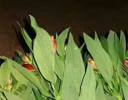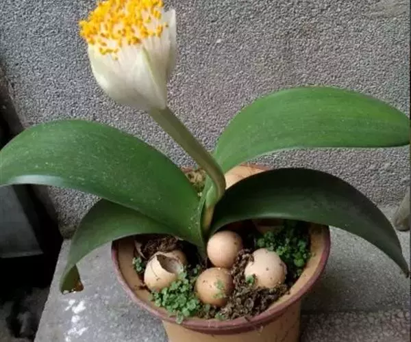 虎耳兰 多年生草本。鳞茎球形,直径4-7厘米。叶3-4枚;叶柄短,鞘状;叶片长圆形,长15-30厘米,主脉两侧各有纵脉6-8条,横行细脉排列较密而偏斜。花茎直立,实心,稍扁平,高30-90厘米,先叶抽出,淡绿色或有红斑;伞形花序具多花,排列稠密,直径7-15厘米,下有佛焰苞状总苞1轮,总苞片3-多枚;花白色。