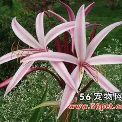 红花文殊兰是石蒜科文殊兰属年生常绿草本植物,高可60-100厘米。叶片大,宽带形或箭形先端尖,…