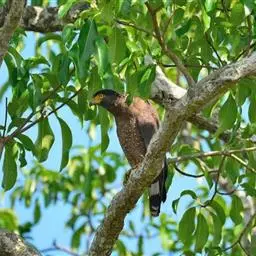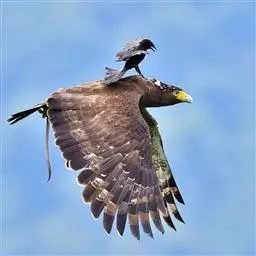 鹰雕,是隼形目鹰科鹰雕属大型猛禽,俗称熊鹰、赫氏角鹰。其上体暗褐色,头后冠羽常竖立起,…