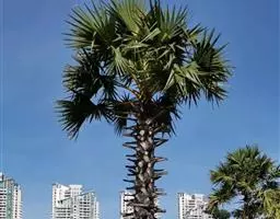 琼棕:又名陈棕,濒危种。常绿丛生灌木至小乔木状,高3至8米,茎直立、粗壮,直径4至8厘米。叶掌状深裂,…