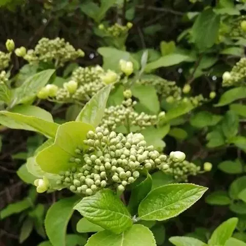 红蕾荚蒾,落叶灌木植物。单叶,对生,为椭圆形或近圆形,具三角状锯齿,聚伞花序。…