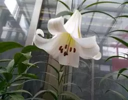 青岛百合是百合科百合属的多年生草本植物;鳞茎近球形;鳞片披针形,白色,无节;叶轮生,…