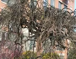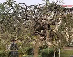 树皮暗灰色,粗糙,不规则纵裂。幼树枝条直立,且被白色毛;老树枝条先端下垂,有时木栓质发达成为瘤状。…