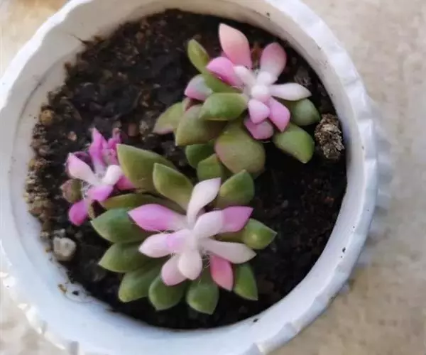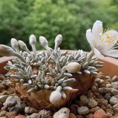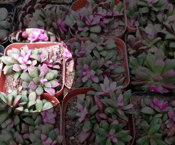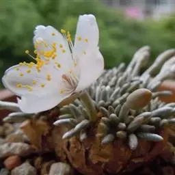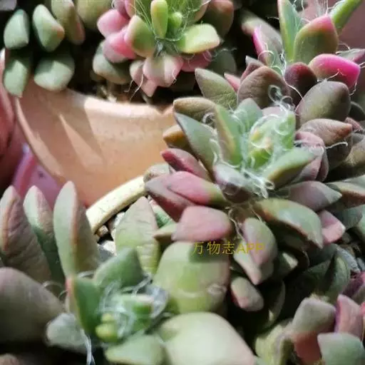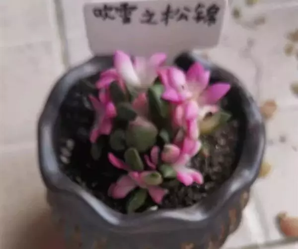 吹雪之松锦原产纳米比亚,是一种变异带有白色锦斑的多肉植物。马齿苋科、回欢草属多肉植物(多浆植物),别称回欢草,顶端叶片似莲花展开,叶面厚实,五彩雍华,喜阳(全日照),但忌长时间放在烈日下。株高仅5厘米,叶色倒卵形,叶腋间有白色丝状毛,开玫瑰色小花。