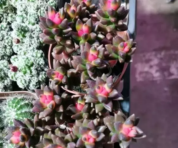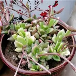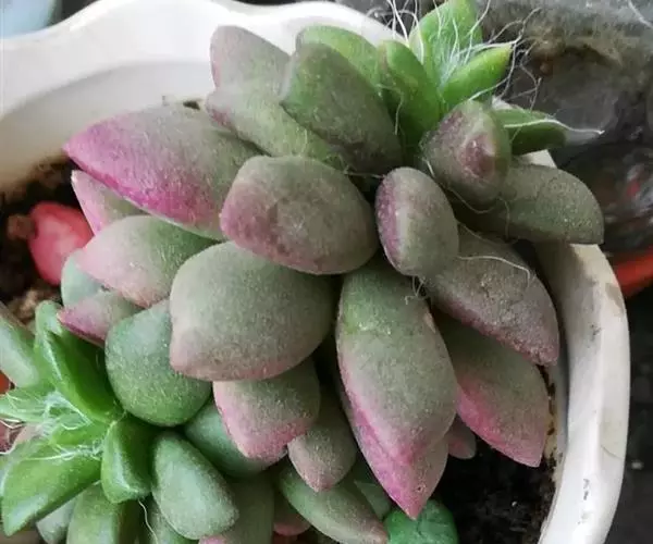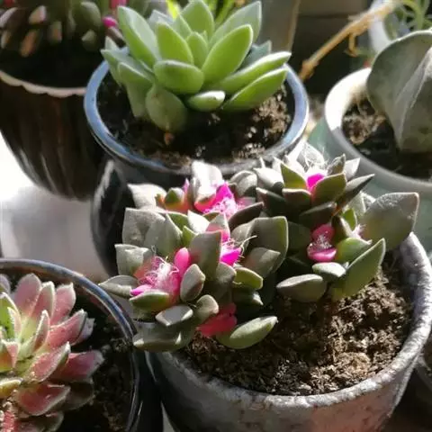变异品种叶上有橘红色斑块,更具观赏性。是马齿苋科中唯一被作为多肉植物介绍的一类。夏季注意节水、通风。喜太阳、忌长时间放在烈日下。可放在窗前、阳台和其他散射光明亮处。冬夏休眠期应节水遮阳。