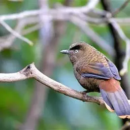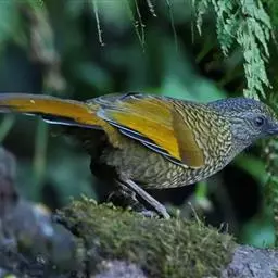 蓝翅噪鹛:噪鹛科、彩翼噪鹛属动物。中型鸟类,体长22-25厘米。上体棕橄榄褐色密被黑色鳞状斑,…