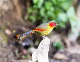 金头穗鹛小型鸟类,体长10~11厘米,是一种黄色小鸟。头顶金黄色有黑色纵纹,眼先黑色,…