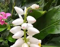 密苞山姜是姜科,山姜属多年生草本植物,株高可达1.5米。叶片椭圆状披针形,顶端渐尖,并具细尾尖,基…