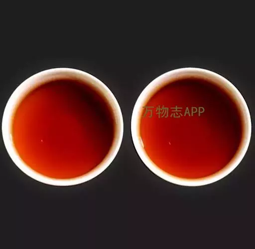 4、红褐:汤色红浓,红中透紫黑,匀而亮,有鲜活感。观察叶底,多呈褐色欠柔软,滋味较醇和。