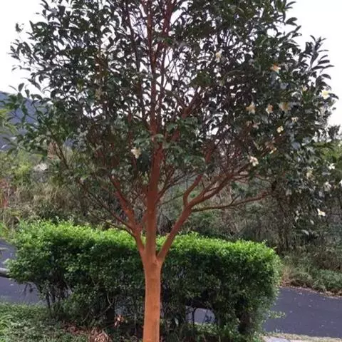 滇山茶:灌木至小乔木,有时高达15米,嫩枝无毛。叶阔椭圆形,上面干后深绿色,发亮,下面深褐色,无毛,…