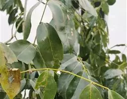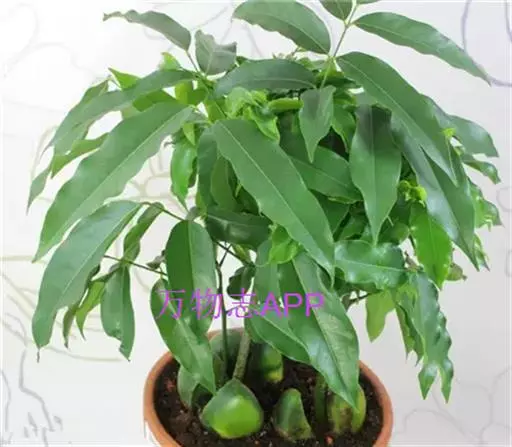栗豆树 栗豆树的子叶———两个“元宝”,即种子的两个豆瓣,不像其它豆科植物在幼苗出土养分消耗后即萎缩消失,而是变为绿色继续进行光合作用,在幼苗期宿存于盆土表面长达一年。随着时间的延长,其子叶在完成一定的使命后,最终还是会发黑瘪掉。特别是在不良环境下,观赏时间会大大缩短。要延长两块元宝的观赏时间,宜将幼苗置放于湿凉半阴的条件下。栗豆树栽培一年后,子叶会渐渐萎缩干扁,属正常现象,这说明它正在长大,长大了的栗豆树会成为很好的室内常绿观叶植物。