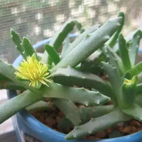 刺叶露子花 Schwantes)是番杏科、露子花属植物。肉质灌木。植株高30厘米左右。分枝密集,…