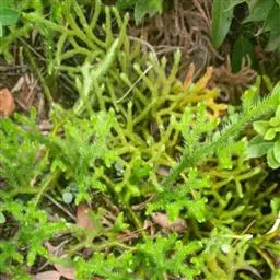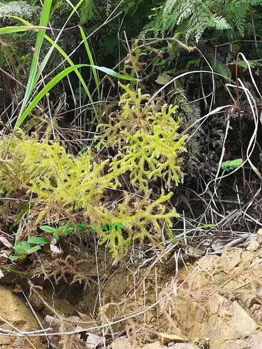 垂穗石松Palhinhaea cernua,多年生草本。须根白色,主茎直立,基部有次生匍匐茎,长30~50厘米或更长。叶稀疏,螺旋状排列,通常向下弯弓,侧枝上斜,多回不等位二叉分枝,有毛;分枝上的叶密生,线状钻形,长2~3毫米,全缘,通常向上弯曲。孢子囊穗单生于小枝顶端,矩圆形或圆柱形,长8~20毫米,淡黄色,常下垂;孢子叶覆瓦状排列,卵状菱形,先端渐尖,具不规则锯齿;孢子囊圆肾形,生于叶腋。孢子四面体球形,有网纹。生长于山溪边或林下荫湿石上。分布于江西、福建、华南地区、西南地区。垂穗石松的全草入药名为铺地蜈蚣 (《福建民间草药》)。