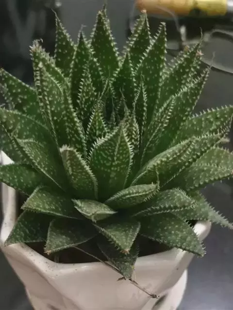 翡翠殿。多年生肉质植物,百合科芦荟属。原产地南非。叶片互生,旋列于茎顶,叶螺旋状互生,叶三角形,淡…