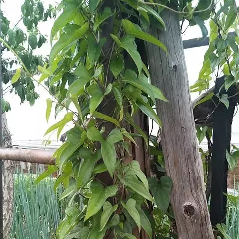 整枝搭架:薯蓣是攀缘植物,苗高30厘米前,必须搭架,架高1.5-1.7厘米,架材入土深20-30厘米。常搭成人字架或四角架。种块发芽时,一般可伸出1条主茎,但有时也可伸出2条以上,相应会产生2-3个块茎,相互争夺养分,使每个块茎又细又小,影响优质生产,应在出苗后,立即拔除多余的茎蔓,只留1个粗壮的主茎。有的品种侧枝过多,中后期要适当摘去下部侧枝,以及主茎与侧枝的顶头。零余子大量形成,影响块茎生长,一般可控制在1500-2250千克/公顷。