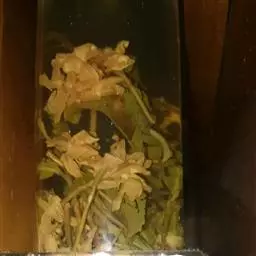 瘦果灰黑色,偏斜椭圆形,长约5毫米,宽2毫米,顶端斜截形,压扁。冠毛污白色,多层,基部连合成环,整体脱落;冠毛刚毛长羽毛状,长达2.2厘米,向顶端渐细。