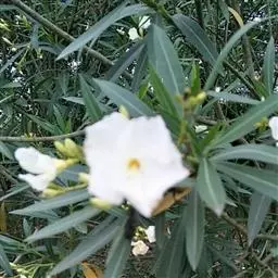 白花夹竹桃是夹竹桃科、夹竹桃属植物夹竹桃的栽培品种。常绿直立大灌木,枝条灰绿色;嫩枝条具稜,被微毛,…