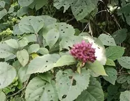 臭牡丹(学名:Clerodendrum bungei Steud.)是马鞭草科,大青属灌木,高可达2米,植株有臭味;花序轴、叶柄密被脱落性的柔毛;小枝近圆形,叶片纸质,宽卵形或卵形,边缘具粗或细锯齿,侧脉表面散生短柔毛,伞房状聚伞花序顶生,苞片叶状,披针形或卵状披针形,小苞片披针形,花萼钟状,萼齿三角形或狭三角形,花冠淡红色、红色或紫红色,裂片倒卵形,花柱短于、核果近球形,5-11月开花结果。
