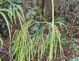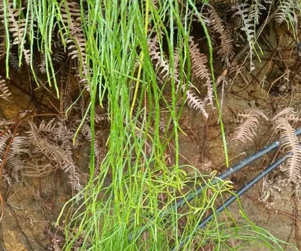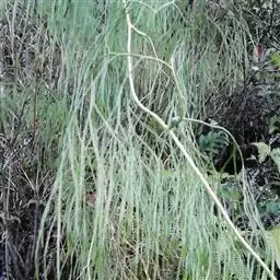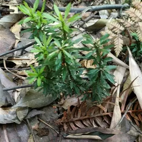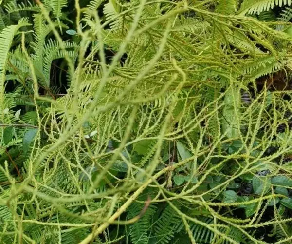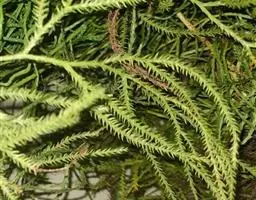 藤石松,为石松科石子藤石松,多年生攀援草本植物,长可达4m。主茎下部有叶疏生,叶钻状披针形,先端长渐尖,膜质,灰白色,向上的叶较小,绿色,厚革质,有早落的膜质尖尾。植物的全草可供药用,《四川中药志》:能舒筋活血。治风湿关节痛,跌打损伤,筋骨疼痛,月经不调及脚转筋。