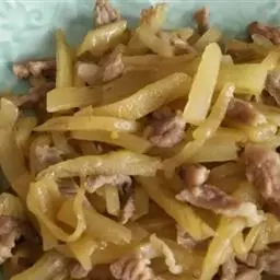 榨菜肉丝是四川省传统的名菜,属于川菜。此菜在四川家庭和中低档饭馆常年制作,原料易得,操作简便,咸淡…