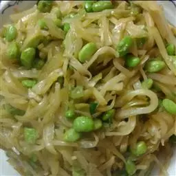 1.猪肉切成丝,加一匙豆瓣酱,然后加点酱油、淀粉、少些油,用手抓几下,腌制15分钟。