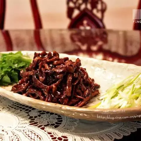 京酱肉丝,是一道知名度很高的菜肴,它是北京菜中的经典代表菜之一。制作时选用猪瘦肉为主料,辅以甜面酱…