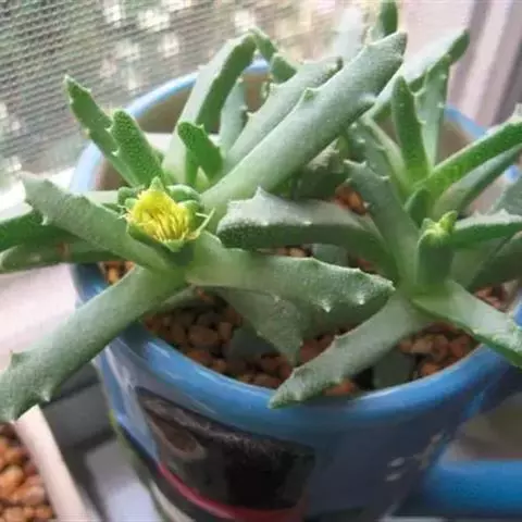 照波,番杏科多肉植物、 此种生长较快,栽培容易,细长的浓绿色叶3厘米左右,开黄色花。…