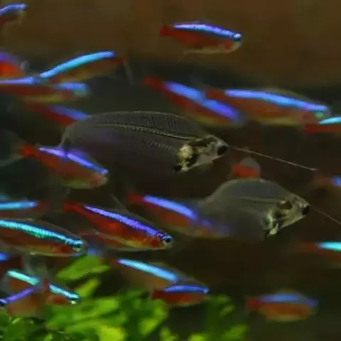 霓虹灯鱼又被称为红绿灯鱼、红莲灯鱼。鱼纲,脂鲤科。原产亚马孙河上游。体长3~4厘米,体形较细,色泽…