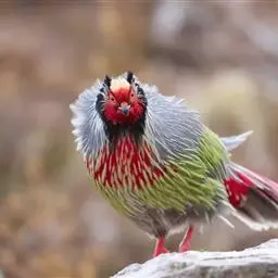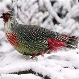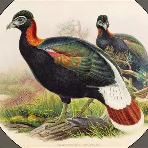 血雉雉科血雉属鸟类,别名血鸡、松花鸡,血雉的雄鸟大覆羽、尾下覆羽、尾上覆羽、脚、头侧、腊膜为红色,…