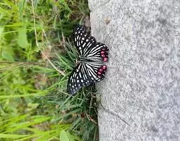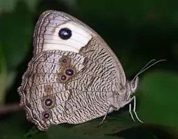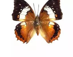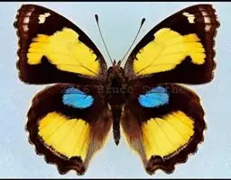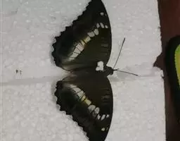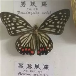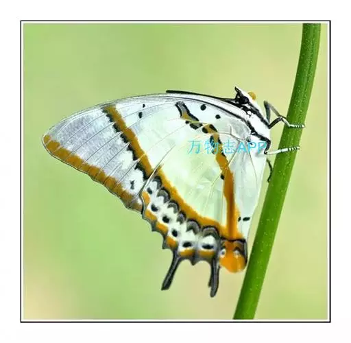 该种雄蝶翅展82mm,雌蝶翅展80mm。外缘有2列黄白色斑,中室端外有2个亚外缘有2列黑斑。翅反面亚外缘横带新月形黑斑列,中横带两侧黑边较粗,横带不分叉,中室内和端脉外各有2个黑点。九连山采集地:大丘田、横坑水、墩头。