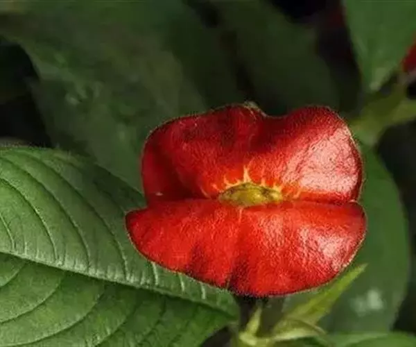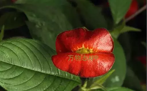 红唇花是半蔓性多年生草本。红唇花茎呈半蔓性,能垂悬生长。叶对生椭圆至长卵形,先端渐尖,边缘波状,叶面微皱。春、夏季开花,花腋生,花冠筒状深裂,桃红色,颇为悦目。与串心花同一属,花型、花色相似,但型态差异较大。叶片光滑,枝条细致柔软易四散下垂,呈现蔓藤植物的样子,但是不具缠绕攀爬的构造。花序生长在叶腋处,能呈现再枝条上成串开花的景象。开花期全年,桃红色的花朵,唇瓣三裂成鸟尾状,姿态美艳可爱。