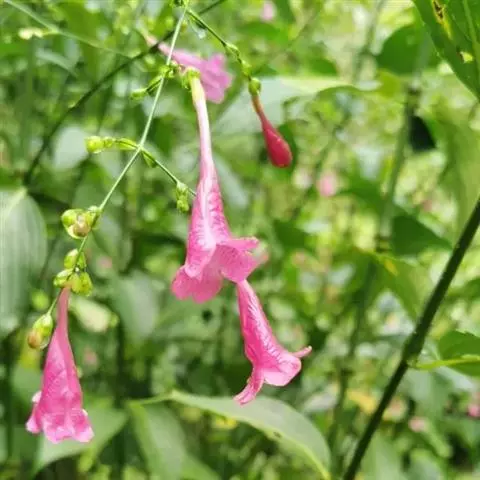 红唇花(拉丁学名:Justicia brasiliana(Dianthera nodosa Brazil))是一种爵床科,虾衣花属植物,常绿蔓状半灌木。原产巴西东部,花序生长在叶腋处,能呈现再枝条上成串开花的景象。开花期全年,桃红色的花朵,唇瓣三裂成鸟尾状。