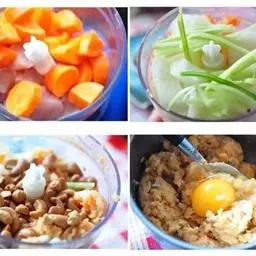 主料:鸡蛋面2块、云吞皮 1包、半肥猪肉 200克、虾仁150克、马蹄2个、鸡蛋1个