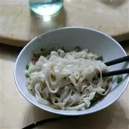 一讲面。地道的面要从面粉加鸡蛋做起,而且最讲究的应该一点水都不用,完全靠鸡蛋。这样做出来的面煮出来带点韧度,吃到嘴里非常爽脆。