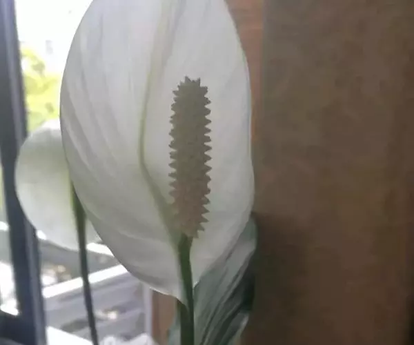 春夏开花,花葶直立,高出叶丛,佛焰苞直立向上,大而显著,稍卷,白色或微绿色,肉穗花序圆柱状,乳黄色。大型种,叶深色,花小、白色,生长慢。花期5-8月。