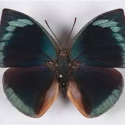 天堂凤蝶翅展可达105mm。前、后翅自基角至后缘约1/2~2/3端为纯净的宝蓝色,后角至后缘1/3…