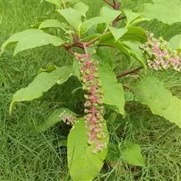 花序不成比例,雄性总状花序长30英寸,其中20英寸含花朵。花序上部及花朵披被着锈色的短柔毛。花梗细长,单一或二裂。果序总状,粗壮。花梗长1.5英寸,常二裂。果荚长四分之三英寸,宽三分之一英寸,膨胀,披被着密集的锈色绒毛。