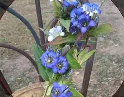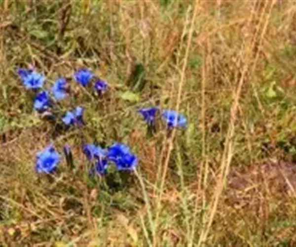 龙胆属植物花色艳丽,色彩丰富,有紫、白、蓝、黄白等多种颜色,适宜作为花坛、花镜或盆花。 龙胆最高不过四、五十厘米,大部份是矮小贴地丛生。一株上有许多分枝,花生于枝上顶端,成古钟形或漏斗形,有4-5个裂瓣,全缘的,也有细裂的成流海似的须。龙胆花在秋冬季一片枯黄的草丛中临风开放,显得分外朴实和幽静,龙胆开花一片片一簇簇,临风摇曳,显出一种淡雅、素静的美,因而成为著名的花卉。