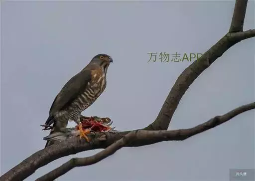 凤头鹰(学名:Accipiter trivirgatus)属中型猛禽,体长41-49厘米。头前额至后颈鼠灰色,具显著的与头同色冠羽,其余上体褐色,尾具4道宽阔的暗色横斑。喉白色,具显著的黑色中央纹;胸棕褐色,具白色纵纹,其余下体白色,具窄的棕褐色横斑;尾下覆羽白色;飞翔时翅短圆,后缘突出,翼下飞羽具数条宽阔的黑色横带。幼鸟上体褐色,下体白色或皮黄白色,具黑色纵纹。