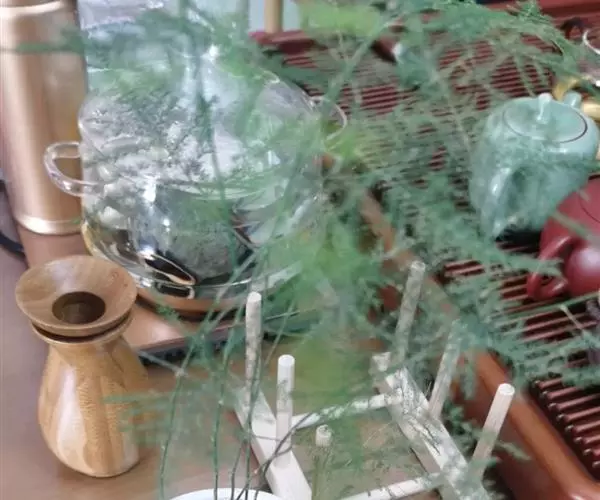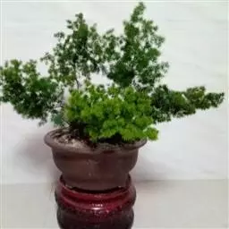 文竹盆载 文竹是观赏价值极高的小植物,以盆栽观叶为主,体态轻盈,姿态潇洒,文雅娴静,是深受人们喜爱的观叶花卉,尤其在书房、案头、卧室、客厅置一盆朱砂盆栽的文竹,配以古铜色花架,显得文雅、别致、大方文竹四季常绿,经冬不凋虽无花之艳丽,但胜花之飘逸。纤细如羽毛之叶,若遇上开花,虽花小色白,但星星点点,在翠绿丛中,显得清雅可爱,而其香却很浓郁。