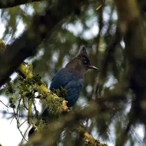 暗冠蓝鸦(Cyanocitta stelleri),又名斯特勒蓝鸦(Steller's Jay),原生于北美洲西部和中美洲。它们常见于针叶林和混合林中,但不喜过于茂密的森林,因为它们需要开放的环境。生性大胆、好奇、聪明、顽皮、吵闹,大部分时间都在森林上层活动。食物的来源非常广泛,包括多种坚果、种子、浆果和其他果实,多种无脊椎动物、蛋、小型啮齿动物。