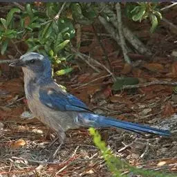 是冠蓝鸦的近缘种,外形的不同之处在于暗冠蓝鸦的头颈部为黑色。