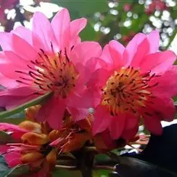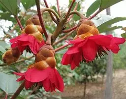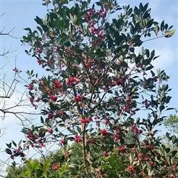 红花荷:金缕梅科红花荷属常绿乔木,高可达12米,嫩枝颇粗壮,叶厚革质,卵形,光滑无毛,有三出脉,叶…