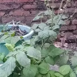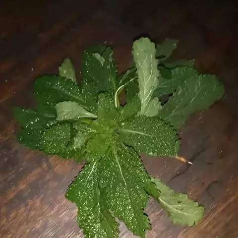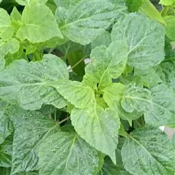 叶对生,叶卵形,叶缘具细锯齿,叶面略皱。